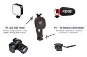 The Fourth Arrow HD MagSafe Mount is a premium heavy duty phone mount that has a cold shoe mount both top and bottom. With the cold shoe on the top you can easily attach an external mic to use with your cell phone or a small video light. The bottom also features a cold shoe mount so you can easily attached your cell phone to the top of your main camera. Or mount this mount directly to your video head with the 1/4" - 20 threading.