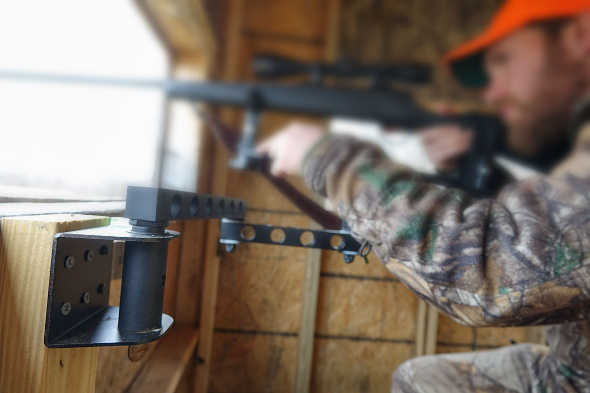 Have a fixed blind or shooting shack on your property that you want to run a camera system in or set up a shooting rest system in? The Fixed Blind Down Post Receiver base allows you to do just that. Simply mount this base to a stud in your blind, then insert a tripod adaptor into the base, tighten down with the provided Down Post Receiver Screw, and you are ready to roll. Provides a super solid base for either your Fourth Arrow camera arm set up or the Fourth Arrow shooting rest system.