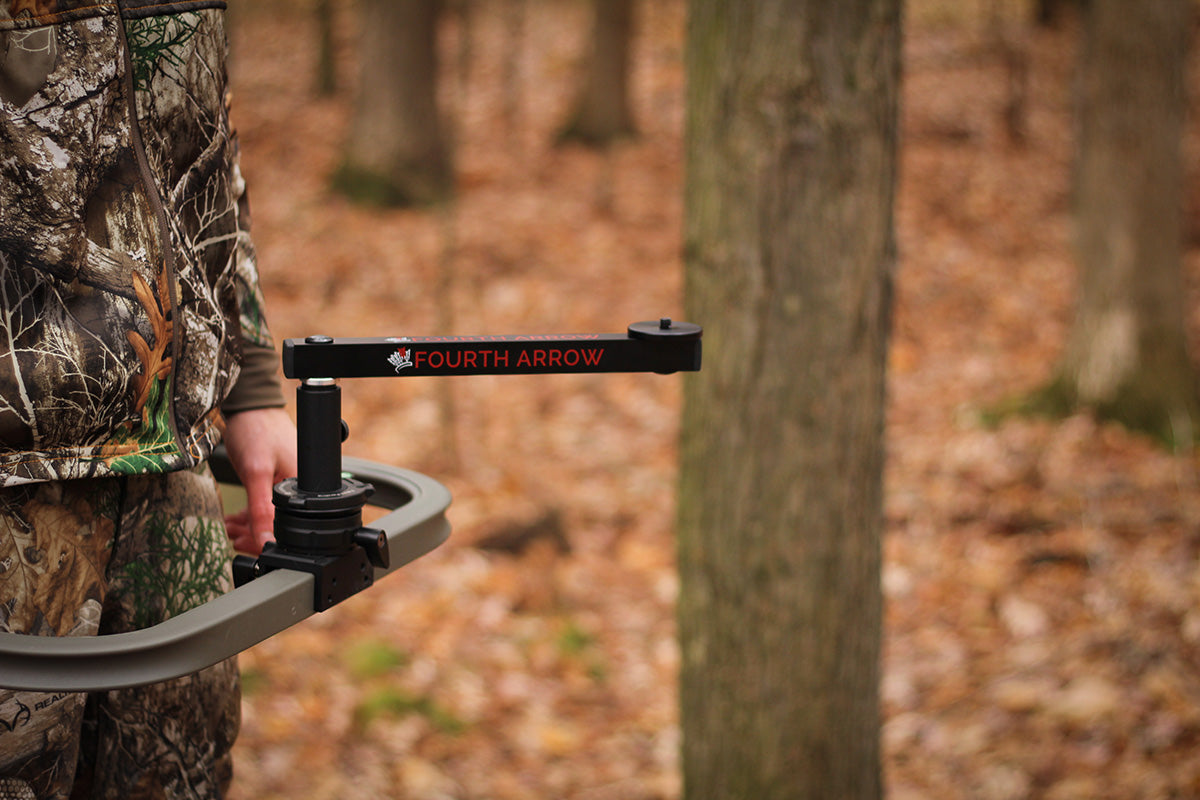 Introducing the most simple and compact tree arm yet. The Rex Arm Rail kit allows you to film your hunt without having to have a long reaching arm and a base that straps to the tree. The Rex Arm Rail kit mounts onto the shooting rail of you ladder or climber stand. The Rail Mount offers approximately 15 degrees of leveling making sure your camera system is level even if your shooting rail isn’t. The built in level bubble makes it really easy to make sure you are level at all times.