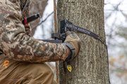 The Baton is designed to be the affordable, beginner camera arm for anyone looking to try filming their hunts for the first time with a small handycam or cell phone. It has a lightweight aluminum construction, easy level system, Patent Pending fold-in design, and 1/4"-20 threading for small video heads.