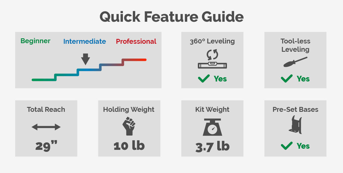 - Kit Weight (Shoulder, Talon, Ratchet, Camera Arm): 3 lb 10 oz lbs