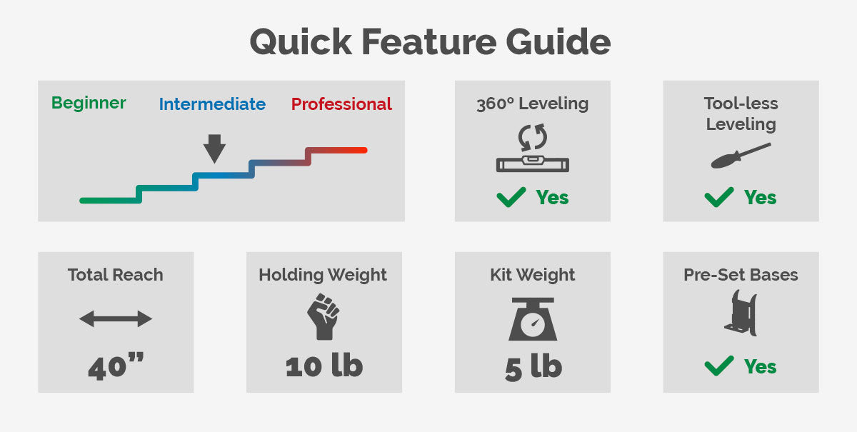 For those of you looking for a little more length and flexibility, the Triple Arm is a great option. With a total reach of 40 inches and the 3 piece design, you will be able to reach most anywhere needed. The new 3.0 base and shoulder make this triple arm kit lighter and more packable than ever.